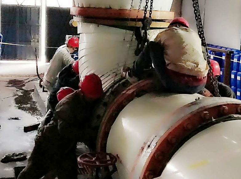 各效體刷洗、水封桶漏點(diǎn)補(bǔ)焊、高空管道等各個(gè)漏點(diǎn)的檢查、修復(fù)、設(shè)備零件的更換,檢修現(xiàn)場處處都是檢修人員全力奮戰(zhàn)的身影。