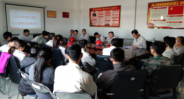 為了充分了解員工的思想動(dòng)態(tài),征詢廣大職工意見和建議,幫助員工解決工作和生活中的實(shí)際困難,加強(qiáng)員工隊(duì)伍建設(shè),體現(xiàn)公司以人為本的管理理念,促進(jìn)企業(yè)更加健康、和諧發(fā)展,寧夏興昊永勝鹽業(yè)科技有限公司于10月10日組織召開了2018年第三季度員工思想交流座談會。會議由鹽業(yè)公司總經(jīng)理尚繼榮同志主持,鹽業(yè)公司黨支部副書記王志杰、綜合科科長張偉及職工代表列席參加會議。