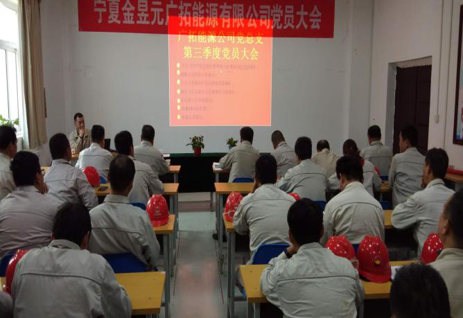 2018年10月16日下午16:30分,寧夏金昱元廣拓能源有限公司黨總支“主題黨日+”活動及三季度黨員大會在化工調(diào)度室召開,公司黨總支書記馬建東主持會議。集團公司黨委副書記王立軍及全體黨員、發(fā)展對象、入黨積極分子共計60余人參加會議。