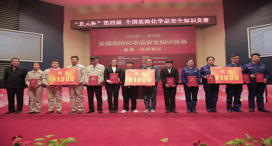 2018年12月7日,由中國石油和化學工業(yè)聯(lián)合會指導,中國化學品安全協(xié)會、中國化工報社主辦,陜西北元化工集團股份有限公司冠名,鄂爾多斯大路煤化工基地管委會協(xié)辦,國家能源寧夏煤業(yè)集團有限責任公司承辦的“北元杯”第四屆全國危險化學品安全知識競賽西部區(qū)復賽在寧夏銀川寧東能源基地舉行。集團公司受邀參加此次比賽,公司領(lǐng)導高度重視,經(jīng)過選拔,挑選出安全知識豐富、生產(chǎn)經(jīng)驗較強、業(yè)務能力突出的3名員工組成代表隊及20多人組成的啦啦隊參加比賽,并獲得了第三名好成績。