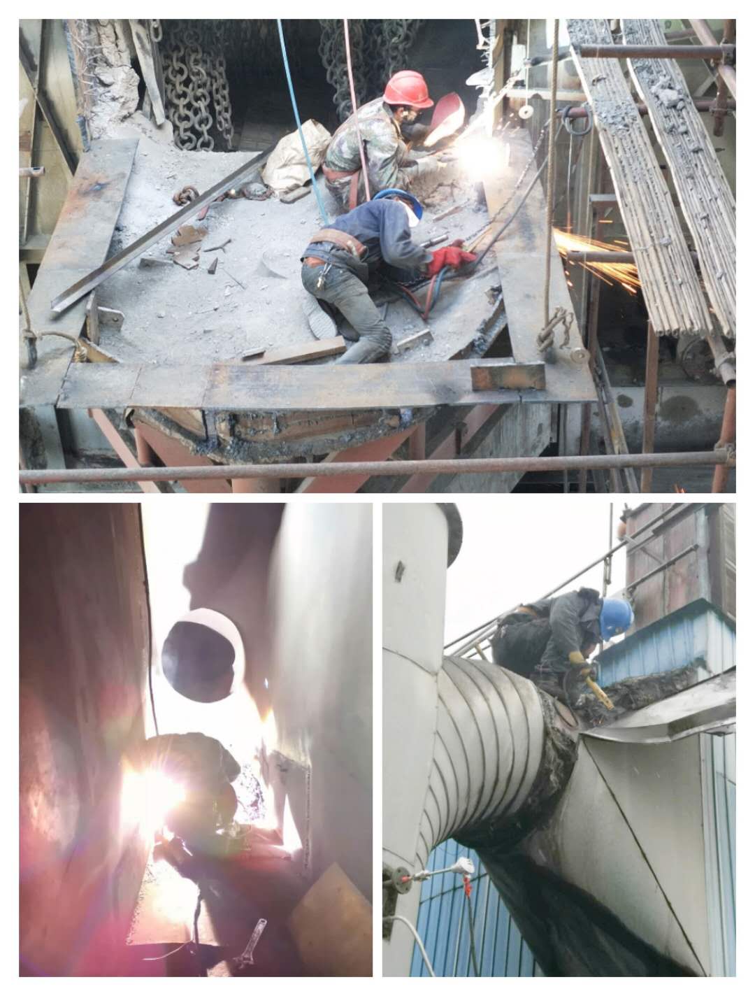 說(shuō)到狹小的空間,我又想到了幾天前補(bǔ)焊收塵管道的維修工,那里也是僅能一人爬進(jìn)去作業(yè),但維修工張凌云和馬海濤沒(méi)有退縮,辦理好作業(yè)票證,他們倆爬進(jìn)了收塵器里認(rèn)真而又圓滿的完成了補(bǔ)焊作業(yè)。