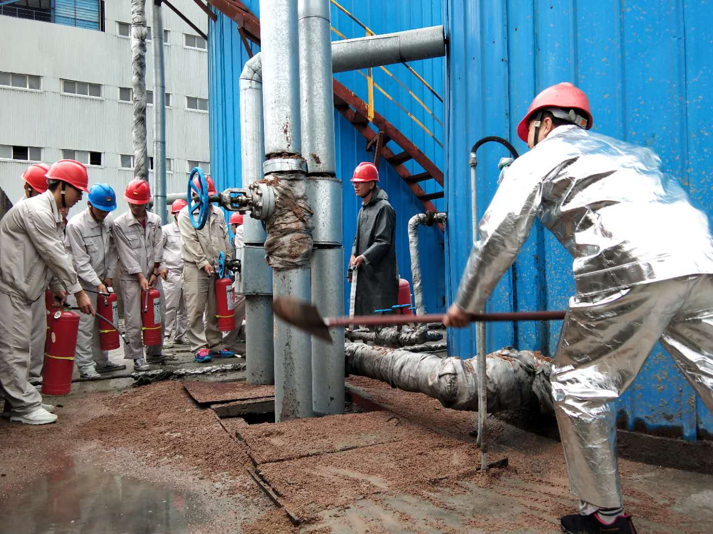 為提高公司各級(jí)人員事故防范和應(yīng)急保障能力,及時(shí)有效且迅速地處理火災(zāi)事故,避免或降低燃油庫區(qū)火災(zāi)事故可能造成的重大經(jīng)濟(jì)損失和影響,根據(jù)公司“安全生產(chǎn)月”活動(dòng)計(jì)劃,緊密圍繞“防風(fēng)險(xiǎn)、除隱患、遏事故”活動(dòng)主題,2019年6月27日下午15時(shí),寧夏興昊永勝鹽業(yè)科技有限公司組織開展了燃油庫區(qū)回油管路著火事故應(yīng)急演練。