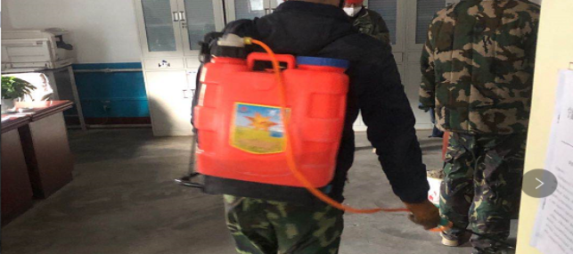 對(duì)廠區(qū)衛(wèi)生間消毒。