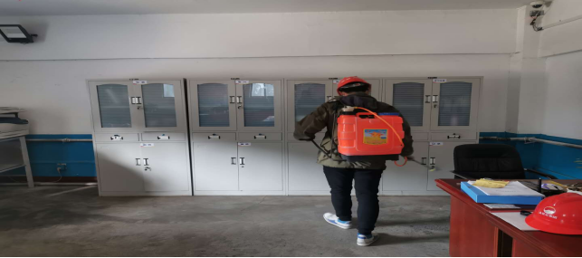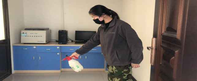 在崗位辦公室消毒。