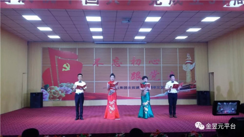 會(huì)后,以“不忘初心跟黨走”為主題,舉辦了慶祝建黨97周年文藝演出,演出圍繞“頌歌獻(xiàn)給黨”這一主要演出內(nèi)容,以歌舞、大合唱、詩朗誦、四重唱為主要表現(xiàn)形式,還自編創(chuàng)作了小品《我想入黨》,音樂快板《幸福金昱元》,營(yíng)造了歌頌黨、歌頌人民、歌頌改革開放和企業(yè)發(fā)展取得的偉大成就,暢想新時(shí)代、中國(guó)夢(mèng)。