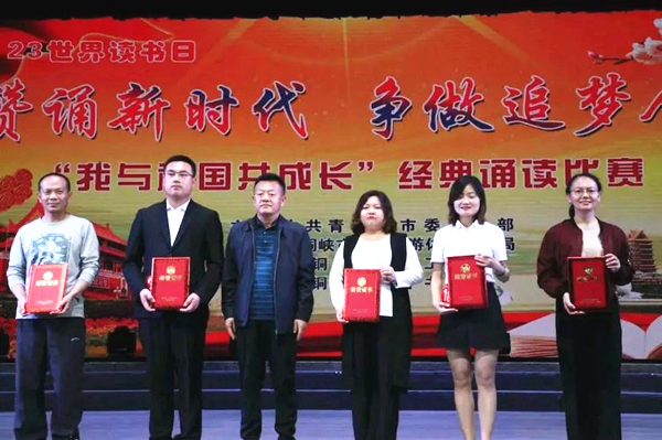 4月23日世界讀書日,由中共青銅峽市宣傳部、青銅峽市文化旅游體育廣播局、青銅峽市總工會聯(lián)合主辦,青銅峽市圖書館承辦的“贊頌新時(shí)代,爭做追夢人——我與祖國共成長”經(jīng)典誦讀比賽在青銅峽市影劇院隆重舉行。