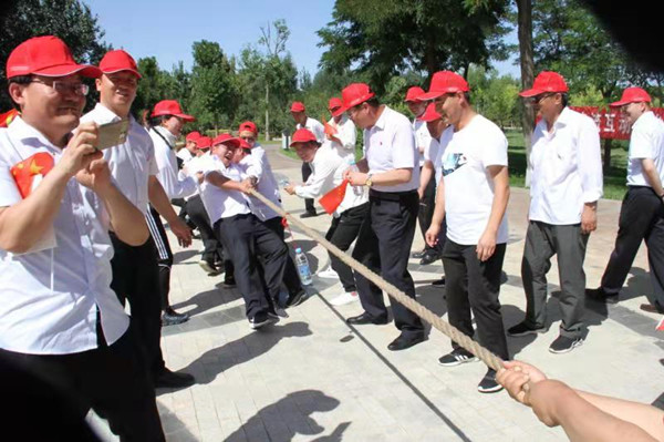 為豐富活動形式,增強黨員的交流互動,放松緊張的工作情緒,活動結合學黨章黨規(guī),組織開展了黨的知識答題接力賽和拔河比賽。拔河比賽中,三個支部選拔精兵強將,循環(huán)比賽。經(jīng)過激烈比拼,資源再生公司黨支部獲得第一名,公司黨委為優(yōu)勝隊頒發(fā)了紀念品。