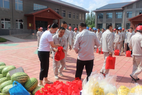 青銅峽市總工會和固原經(jīng)濟開發(fā)區(qū)總工會為集團公司送來西瓜、礦泉水、金絲菊、冰糖等防暑物品,表達對企業(yè)一線員工關心和厚愛。