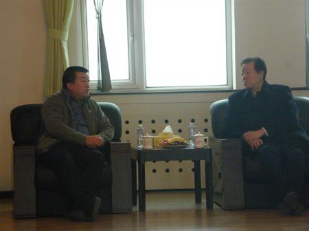 自治區(qū)國(guó)稅局副局長(zhǎng)陳連書(shū)(右)與金昱元公司董事長(zhǎng)代良云(左)親切交談